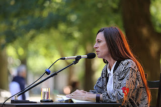 | María Cecilia Barbetta bei einer Lesung, 2018 Foto: Wikipedia/Amrei-Marie |